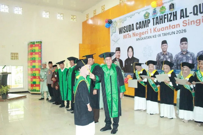 | Kamis, 29 Januari 2026 Bupati Kuansing, Hadiri Wisuda Tajfis MTsN 1 Pangean