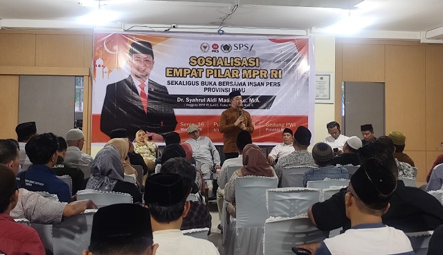 | Selasa, 17 Maret 2026 Syahrul Aidi Maazat Sosialisasikan 4 Pilar MPR RI Bersama PWI, SMSI, AMSI dan SPS Riau