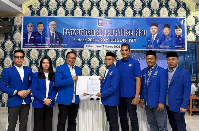 | Selasa, 03 Maret 2026 Didampingi Pengurus, Muhammad Bakri Kantongi SK Ketua DPD PAN Pelalawan