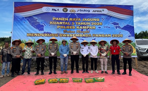 | Rabu, 08 April 2026 Panen Raya Jagung di Kampar, Sinergi Polres Kampar dan Dunia Usaha Perkuat Swasembada Pangan